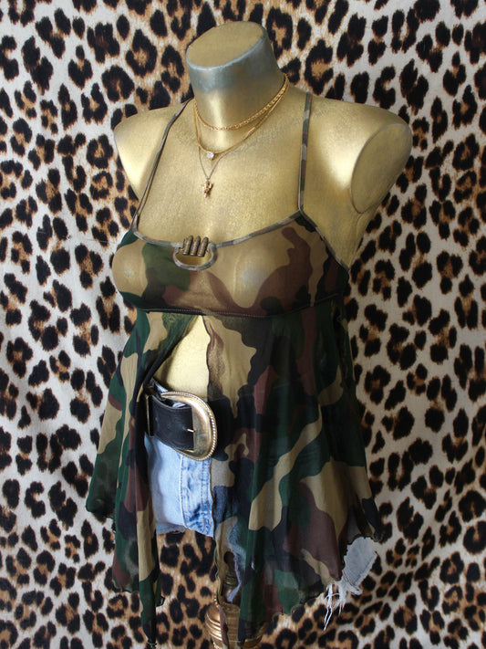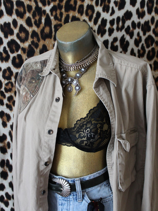 VINTAGE WRANGLER TAN + CAMO BUTTON-UP