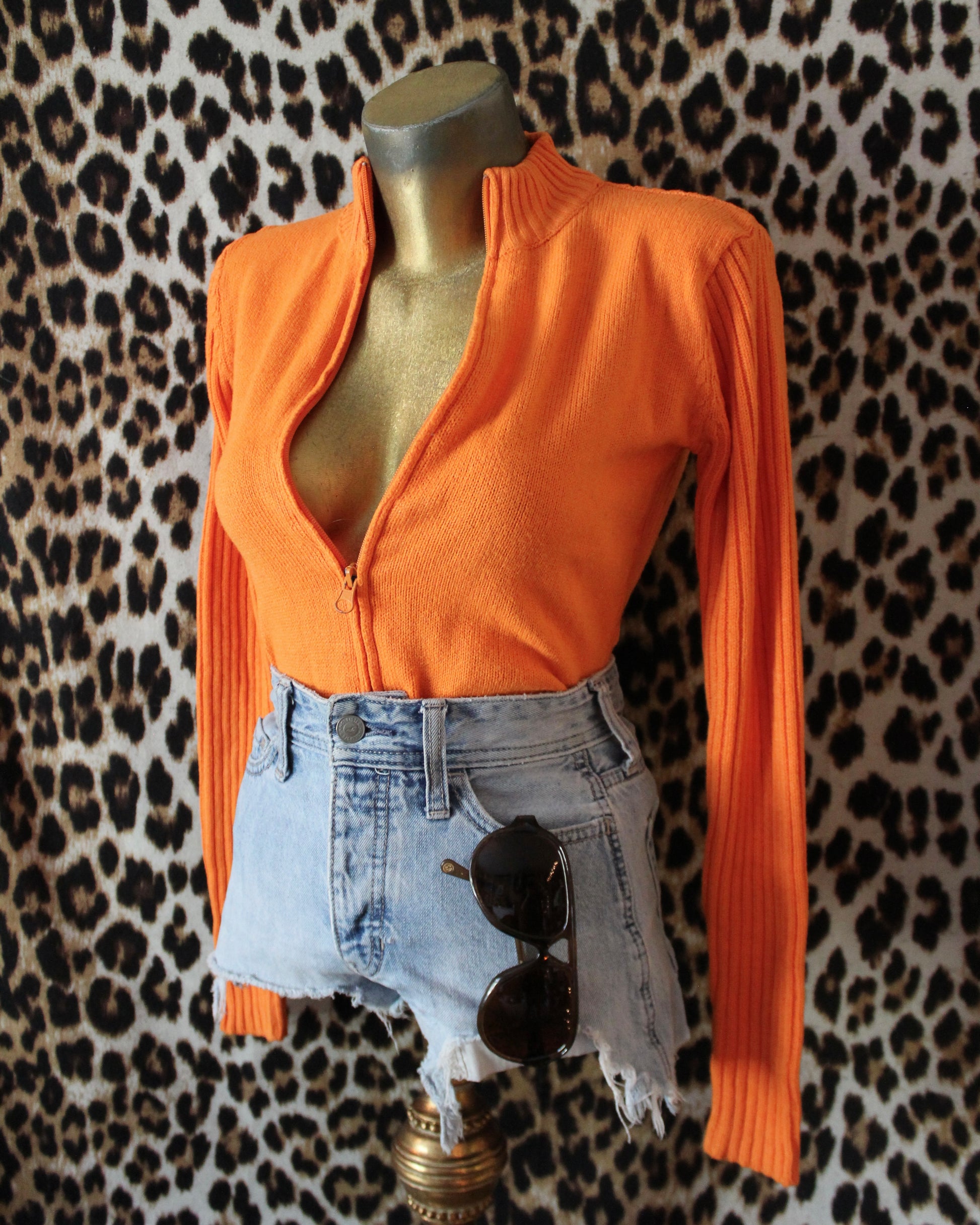 VINTAGE 90’S/Y2K ORANGE ZIP UP SWEATER