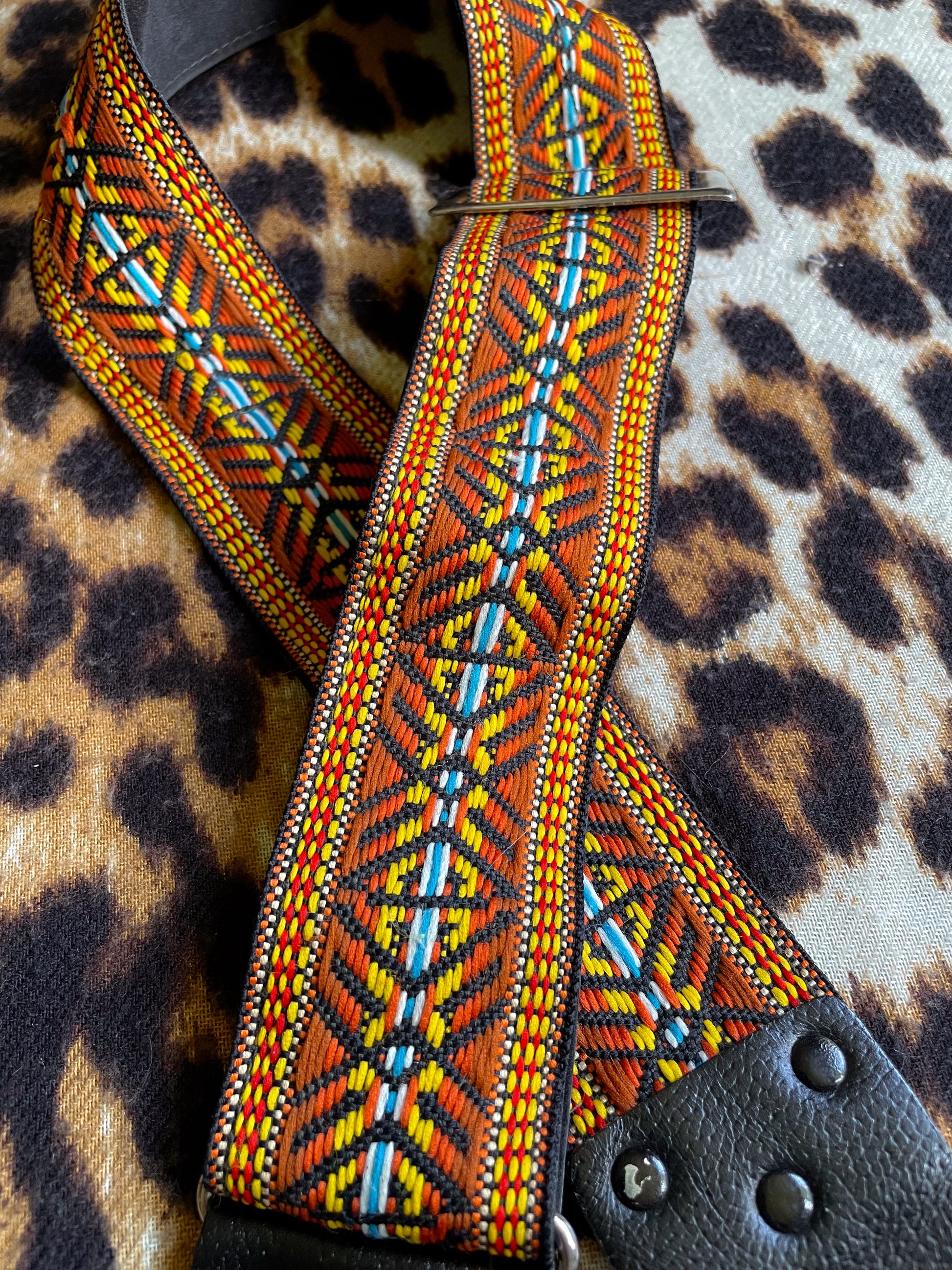 It’s time to level up your bag strap game! A simple way to add a unique and thoughtful element to your style. Based on the hardware, it appears to be vintage but we can’t be sure. Hell, it could’ve even been a guitar strap at one point. Adjustable strap. Some small signs of wear from age.