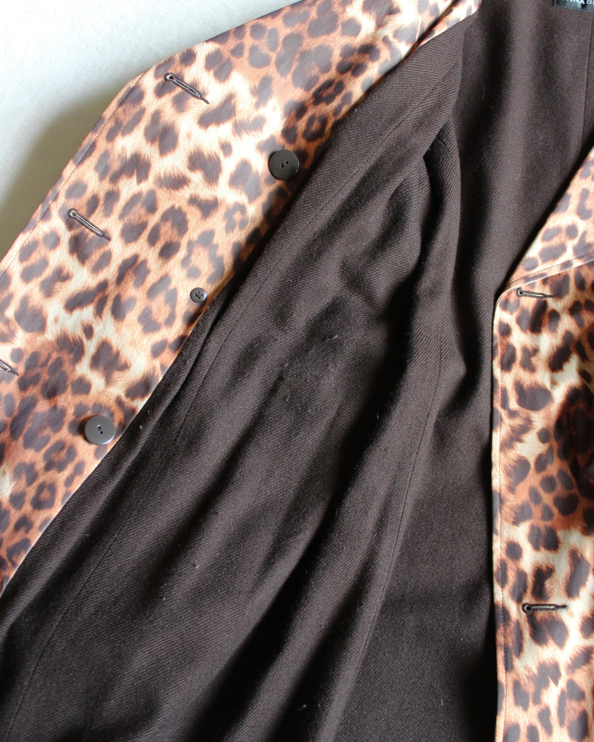Brigitte Bardot was known for rocking a cheetah or leopard trench as part of her signature style during the 60s and this piece channels her perfectly. This Dana Buchman trench features beautiful, slightly iridescent double breasted buttons, slit on the back, collar/lapels, front pockets, and a belt to snatch your waist. Inside shows some light pilling from wear, see last picture. Size Women’s Small; see measurements below!