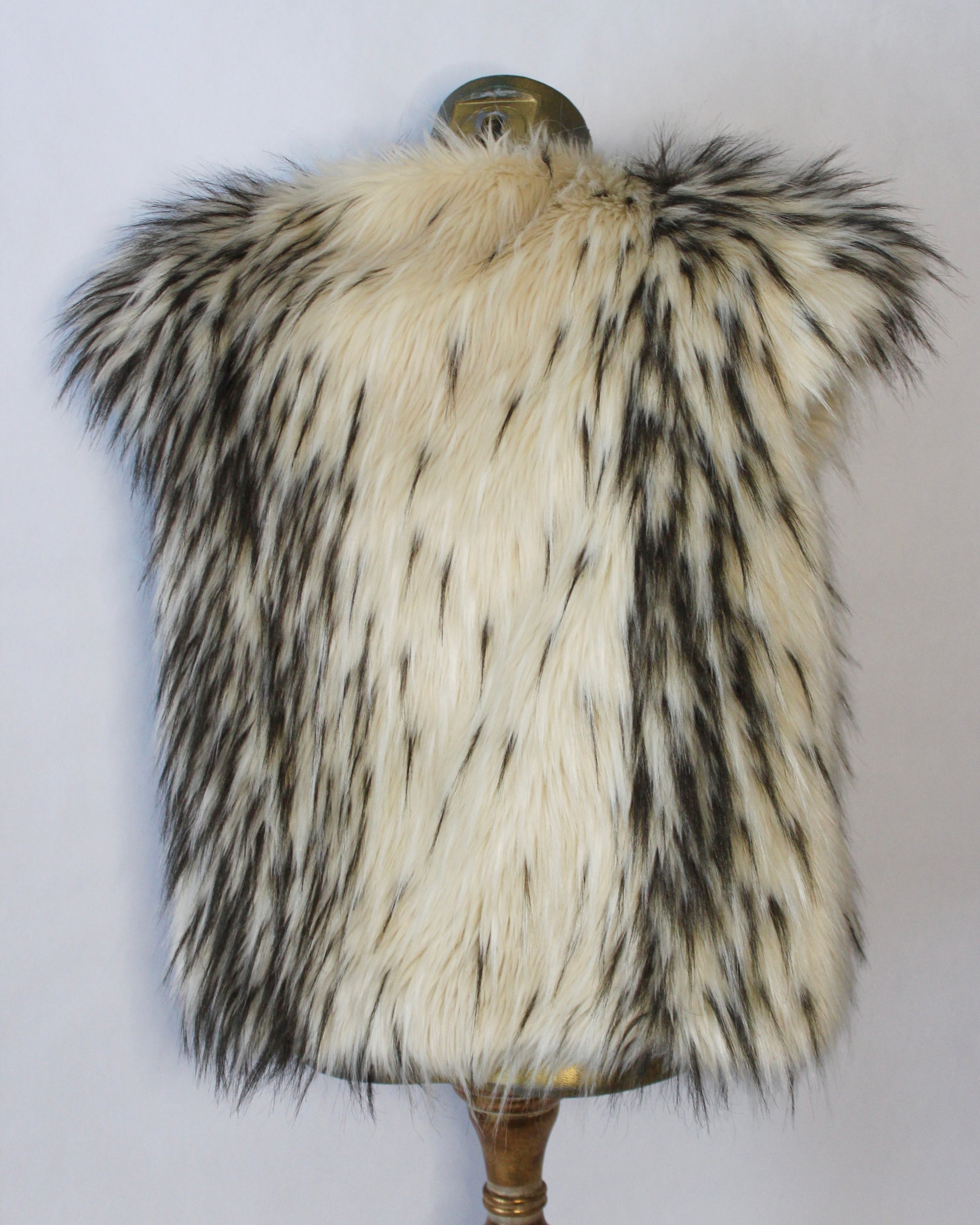 If this ain’t the coolest vest you’ve ever seen, we don’t know what is. David Bowie mixed with Marc Bolan. A show-stopping piece by Twelfth Street by Cynthia Vincent featuring soft cream and black faux fur, gorgeous silky inside lining, slightly capped shoulders and the best part… chainmail detail down the front. Would look absolutely badass over a black leather jacket. Size Women’s Medium; can fit slightly oversized on Small as well. See measurements below!