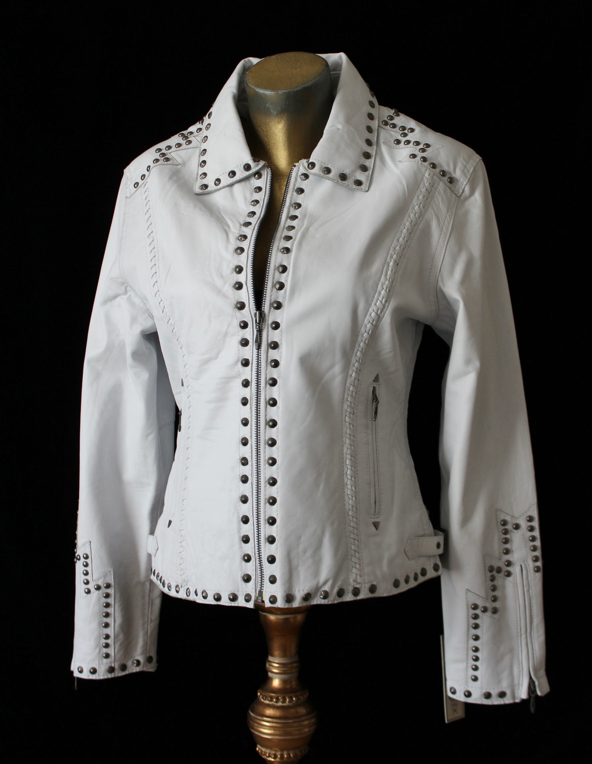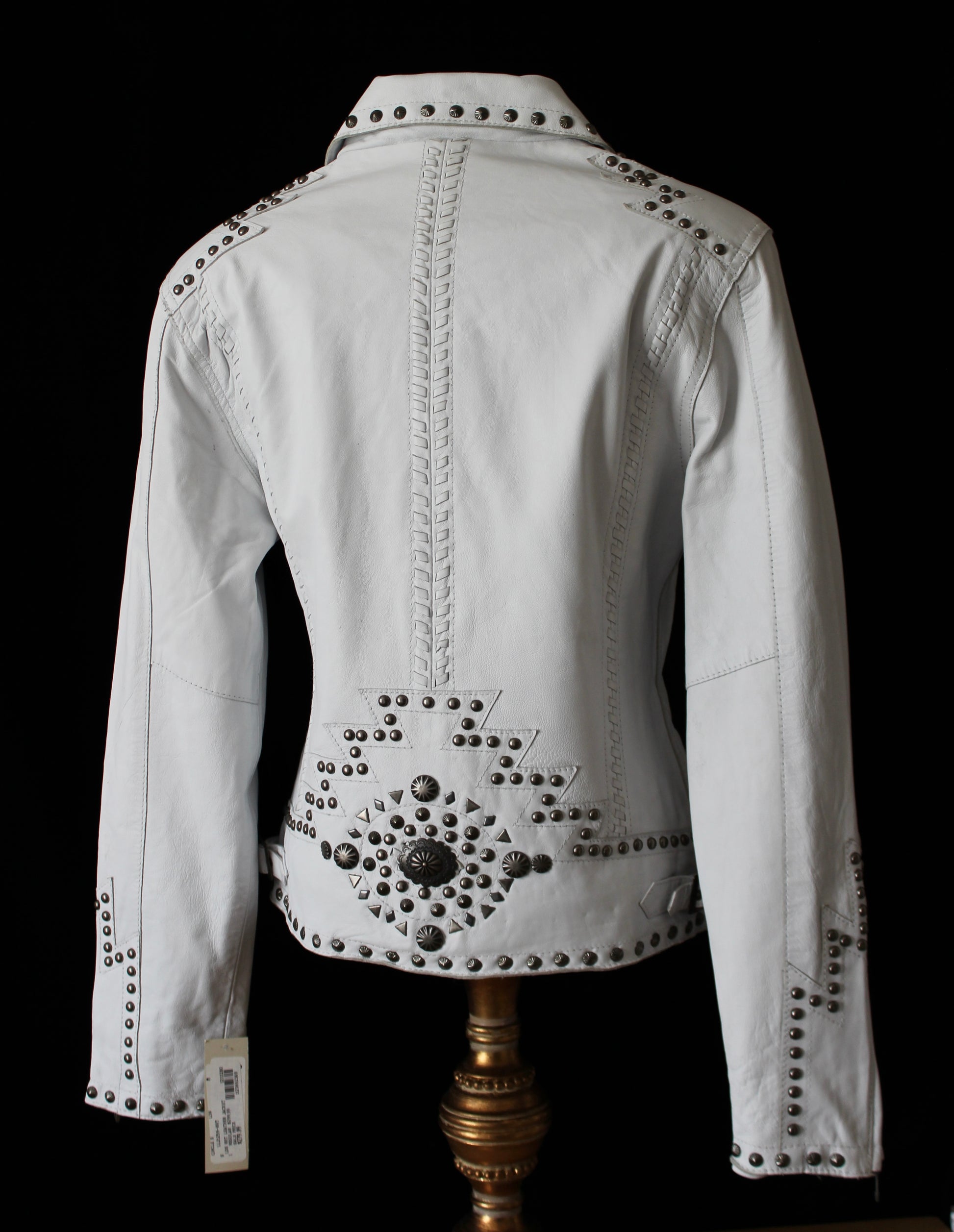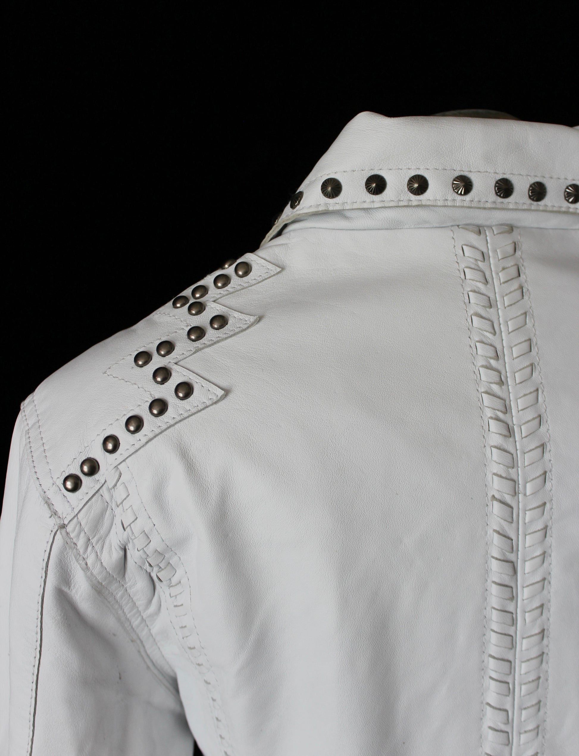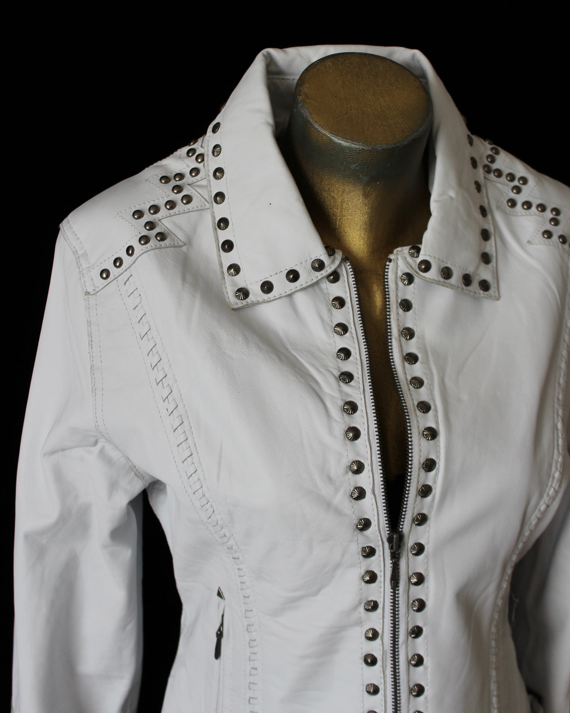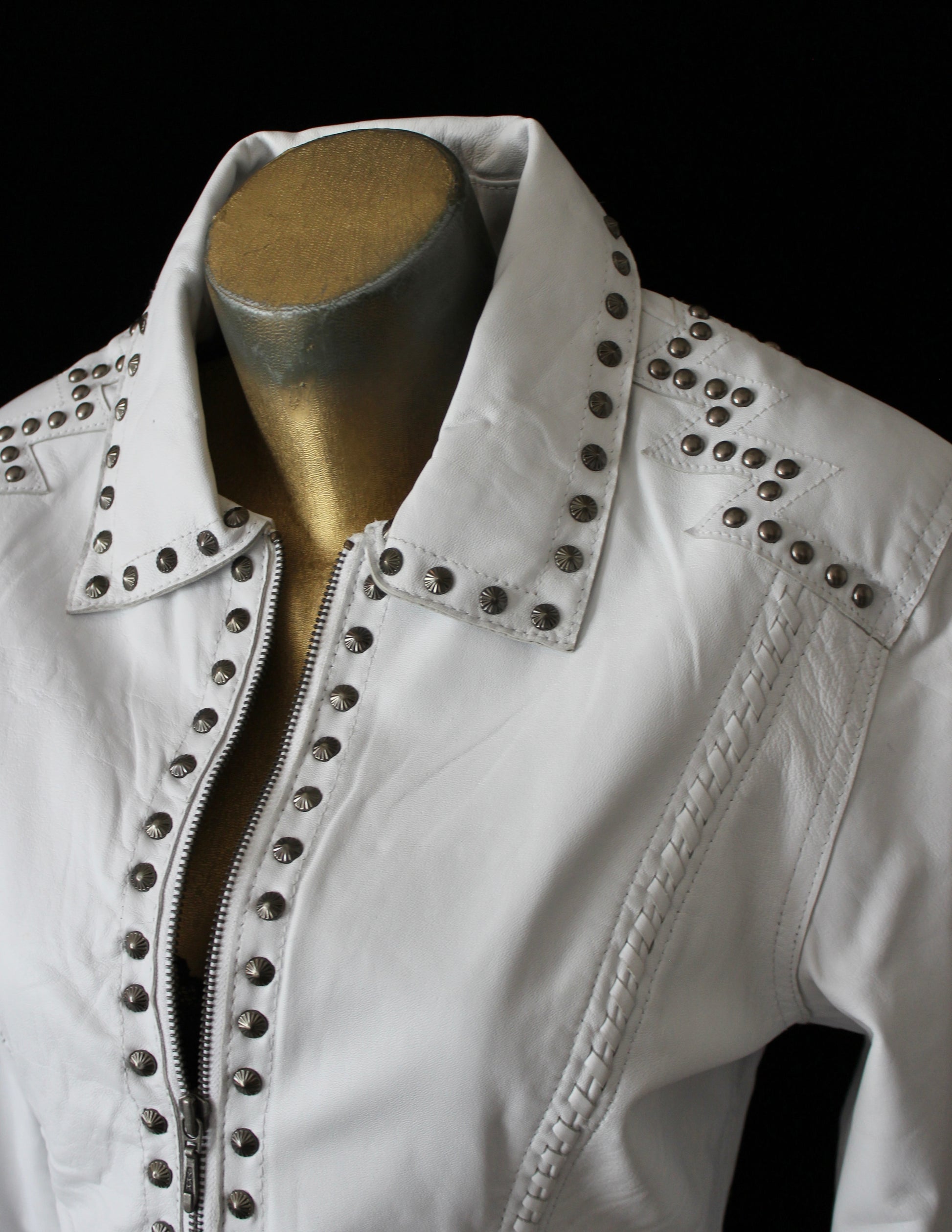 ROCK N ROLL STUDDED WHITE LEATHER JACKET
