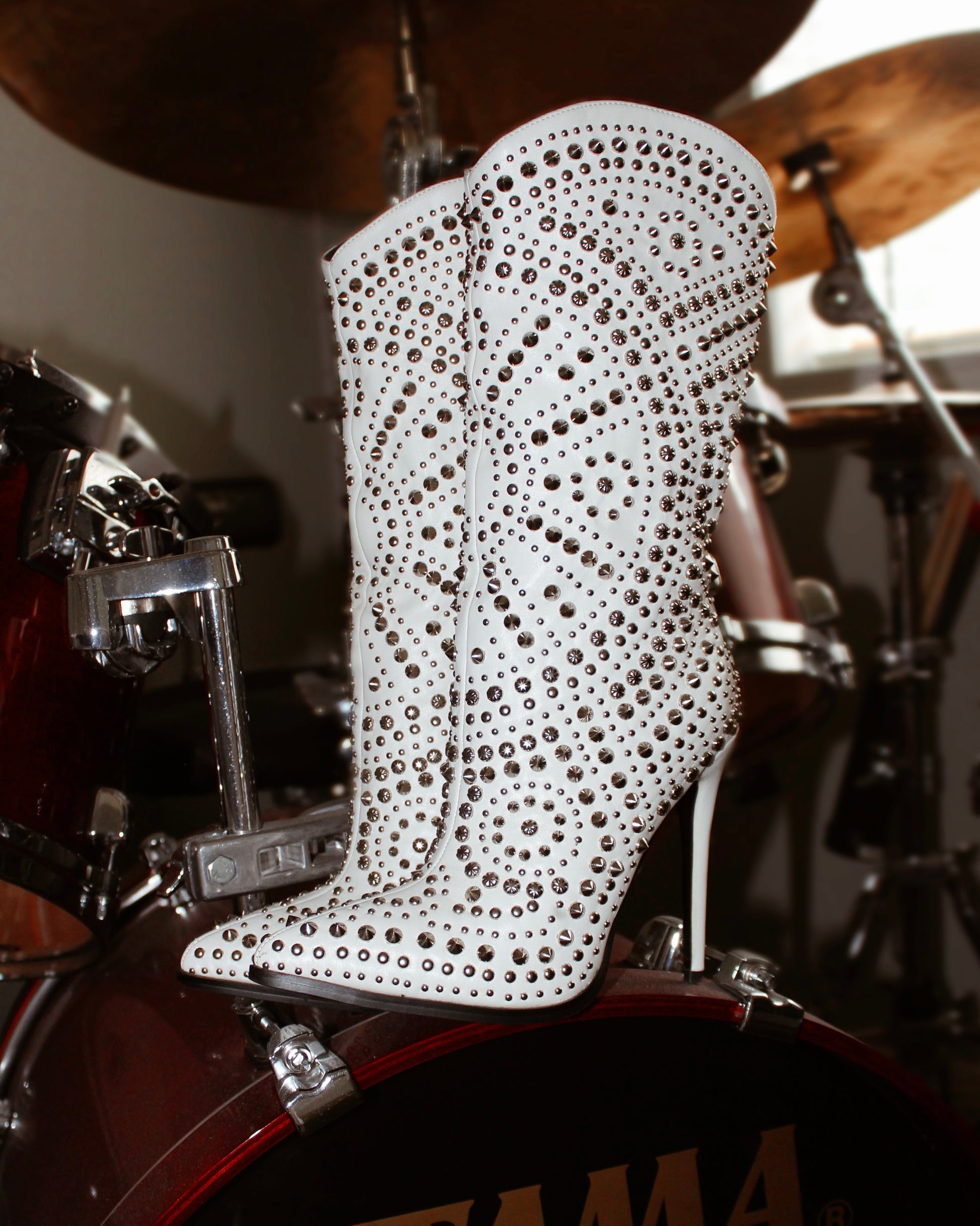 There’s no denying these are a work of art. Glam rock meets western with these insane stiletto boots. White faux leather with the most studs you’ve ever seen on a boot before. Pointed toe. By Azalea Wang. Sold out everywhere. If you want to receive about a million compliments, these are the boots for you. Barely worn, in good condition besides minor wear on heels. Heel measures 4.5”. Boot measures approx 14.5” top to bottom. Size Women’s 6.5.