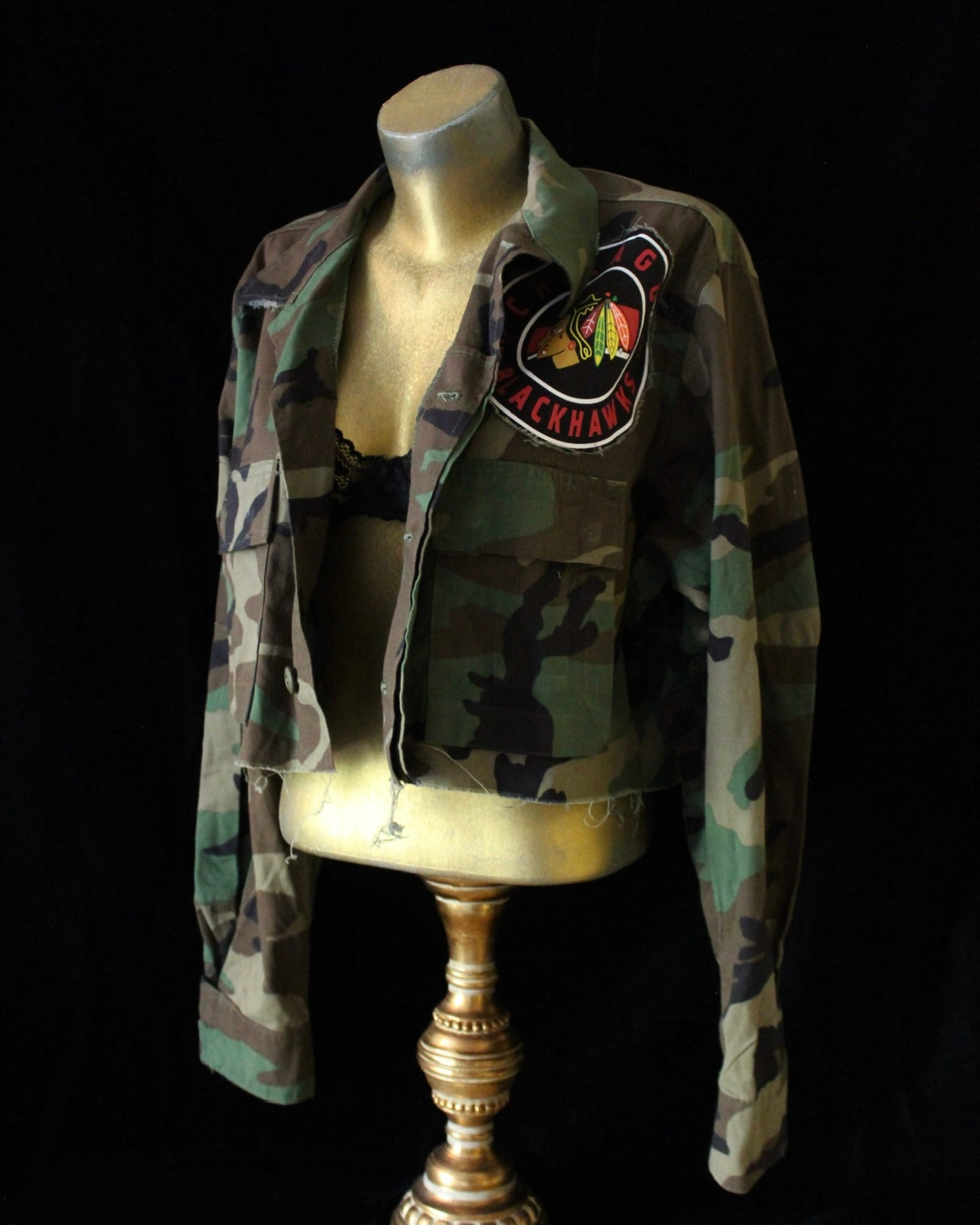 Inspired by legendary Chicago Blackhawks center and first overall pick in the 2023 NHL entry draft Connor Bedard or “Bedsy”, this jacket features a raw hem crop, hand distressing, custom Blackhawks logo on the front, hand painted BEDARD name bar, hand painted logo with white stitching framing it. A one of a kind piece that will never be made again. Marked as a Men’s size Medium; would fit a Women’s Large best. Sleeves look badass cuffed as well if they are too long. See measurements below!