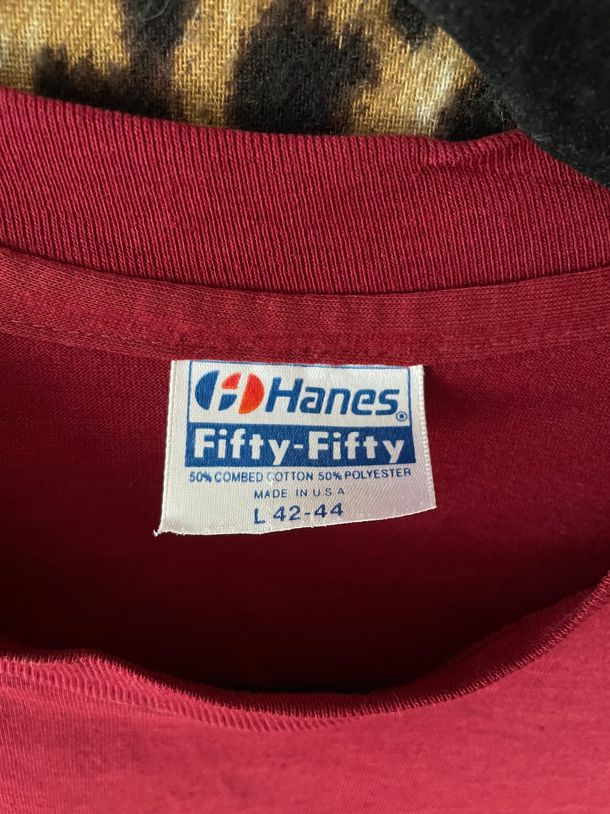 Thin, perfectly worn in vintage 1984 graphic tee from Rathdrum Pioneer Day Celebration Prairie Dog Fun Run. Hanes Fifty-Fifty (50% Cotton, 50% Polyester). Made in USA. See last picture for flaw. Marked as a size Large; see measurements below!