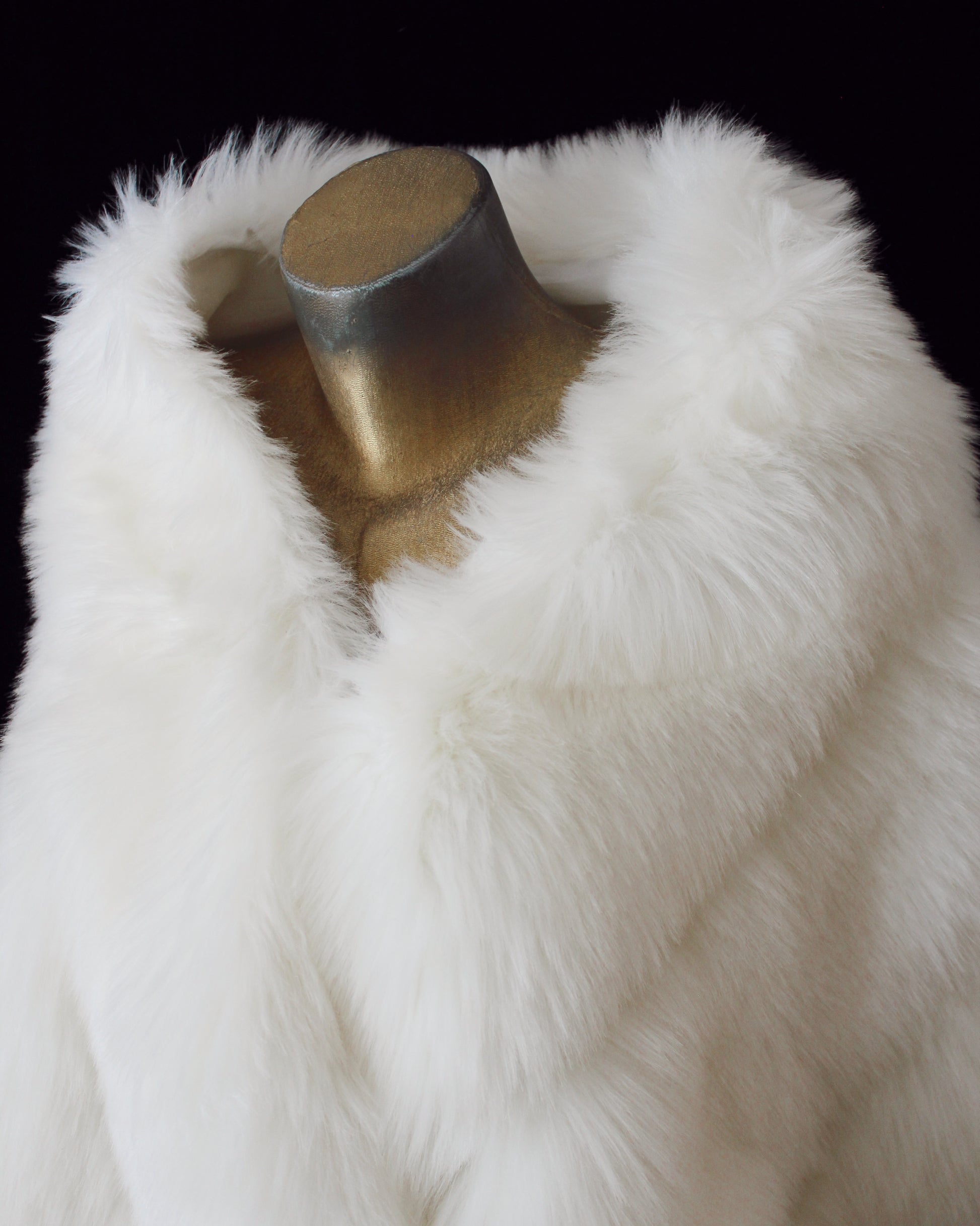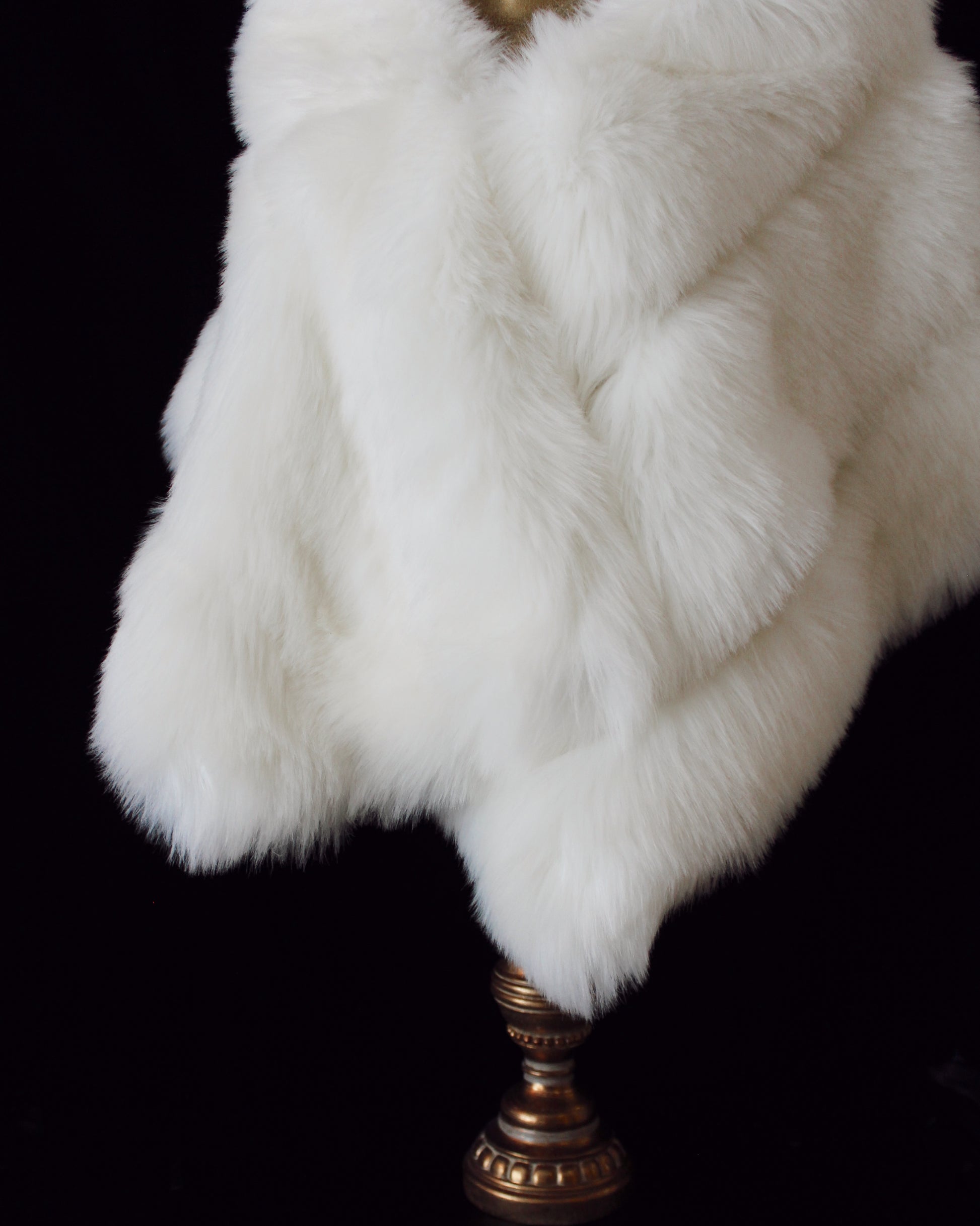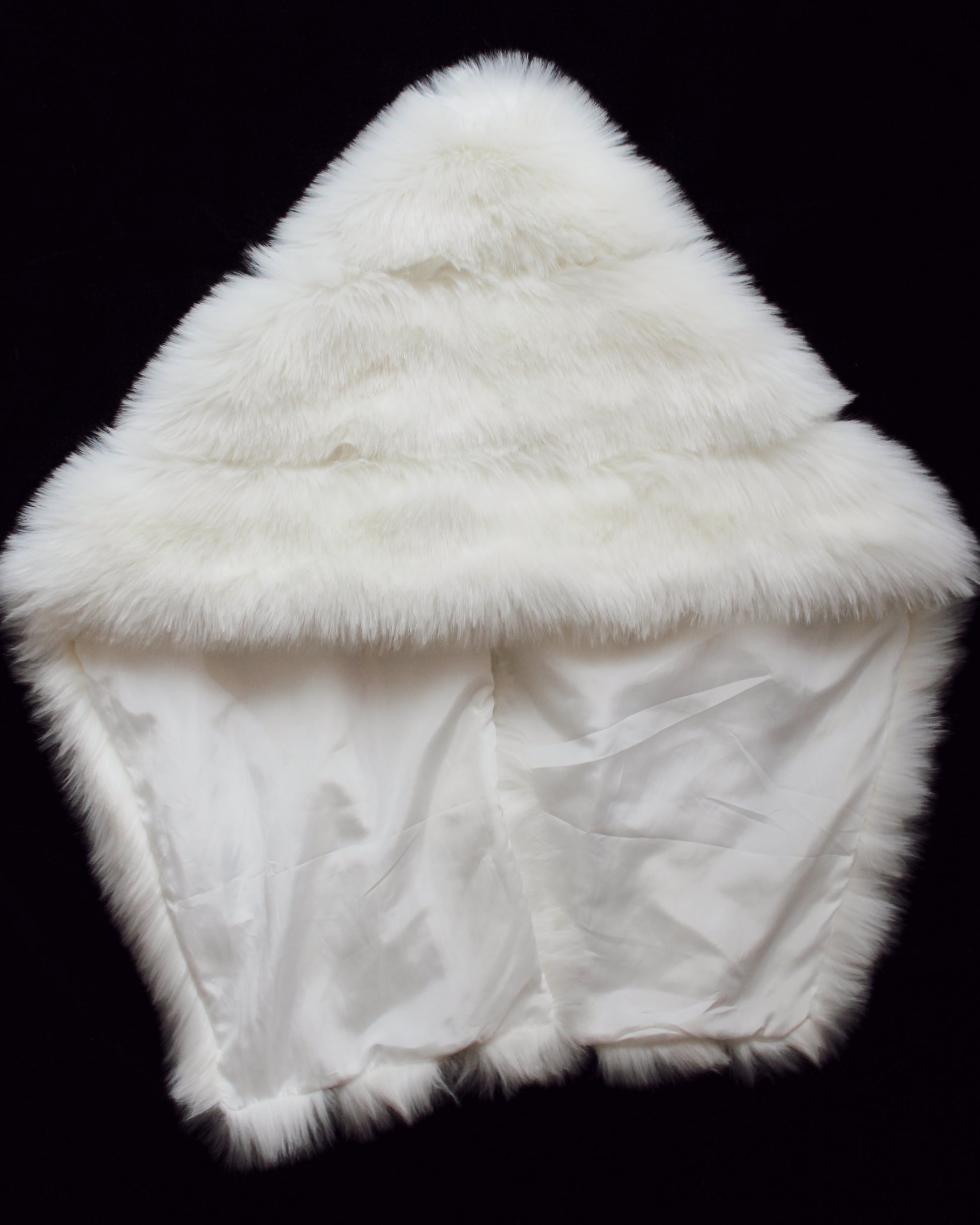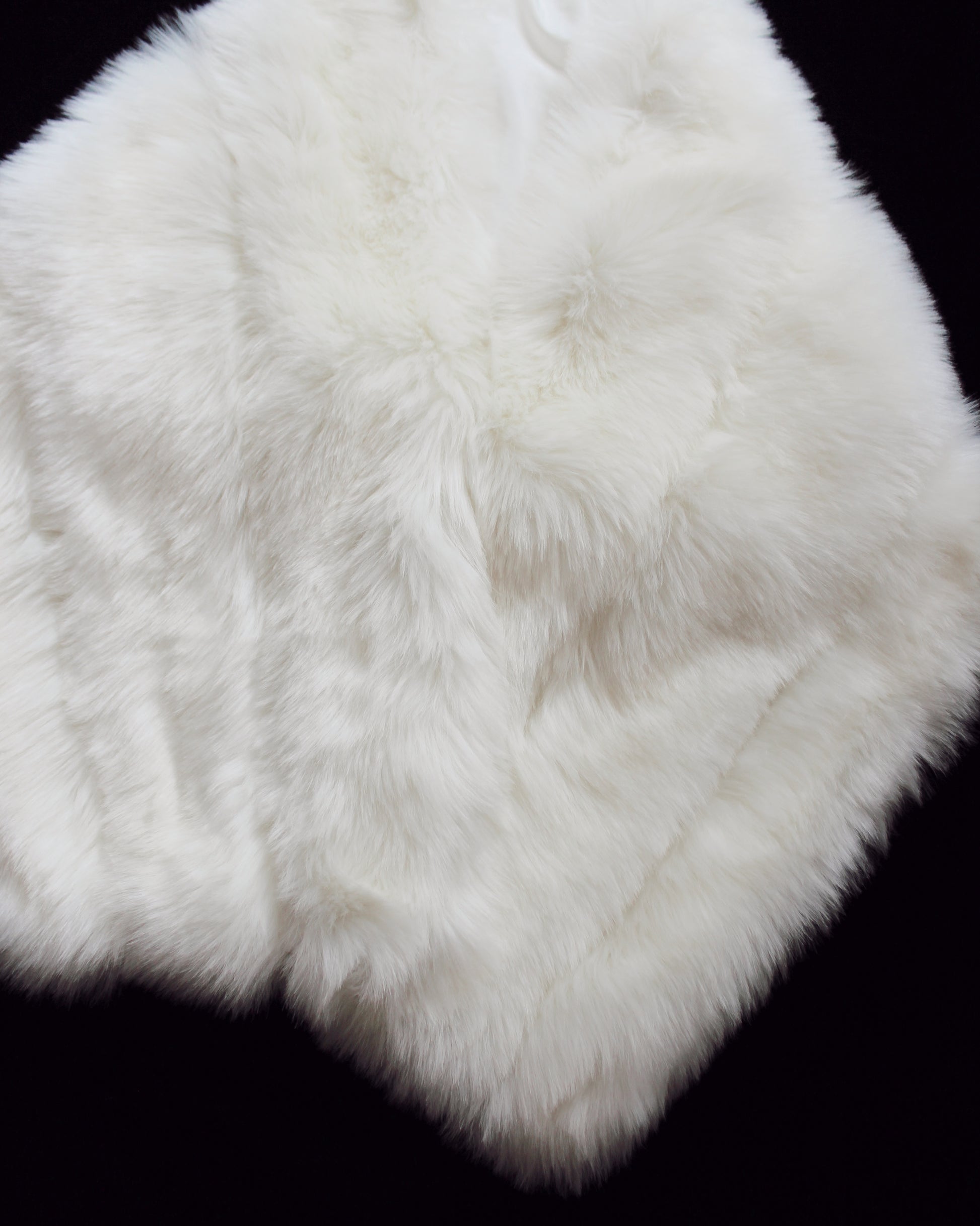 This piece really has it all: snowy white soft faux fur, front pockets and two hook closures. Take your winter ‘fits to the next level with this fabulous number. Looks vintage but is a modern piece. Measures approximately 63” in length. Can fit a Women’s Small — Large.